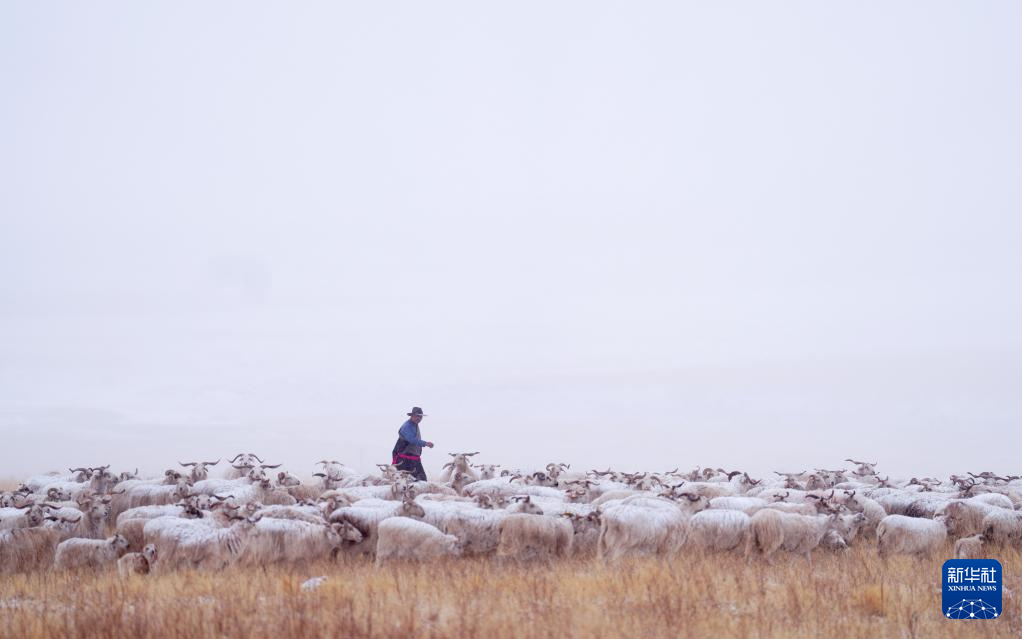 3月7日,在青海省海北藏族自治州祁连县阿柔乡草大板村,牧民准备将羊群放归草原。新华社记者 张龙 摄